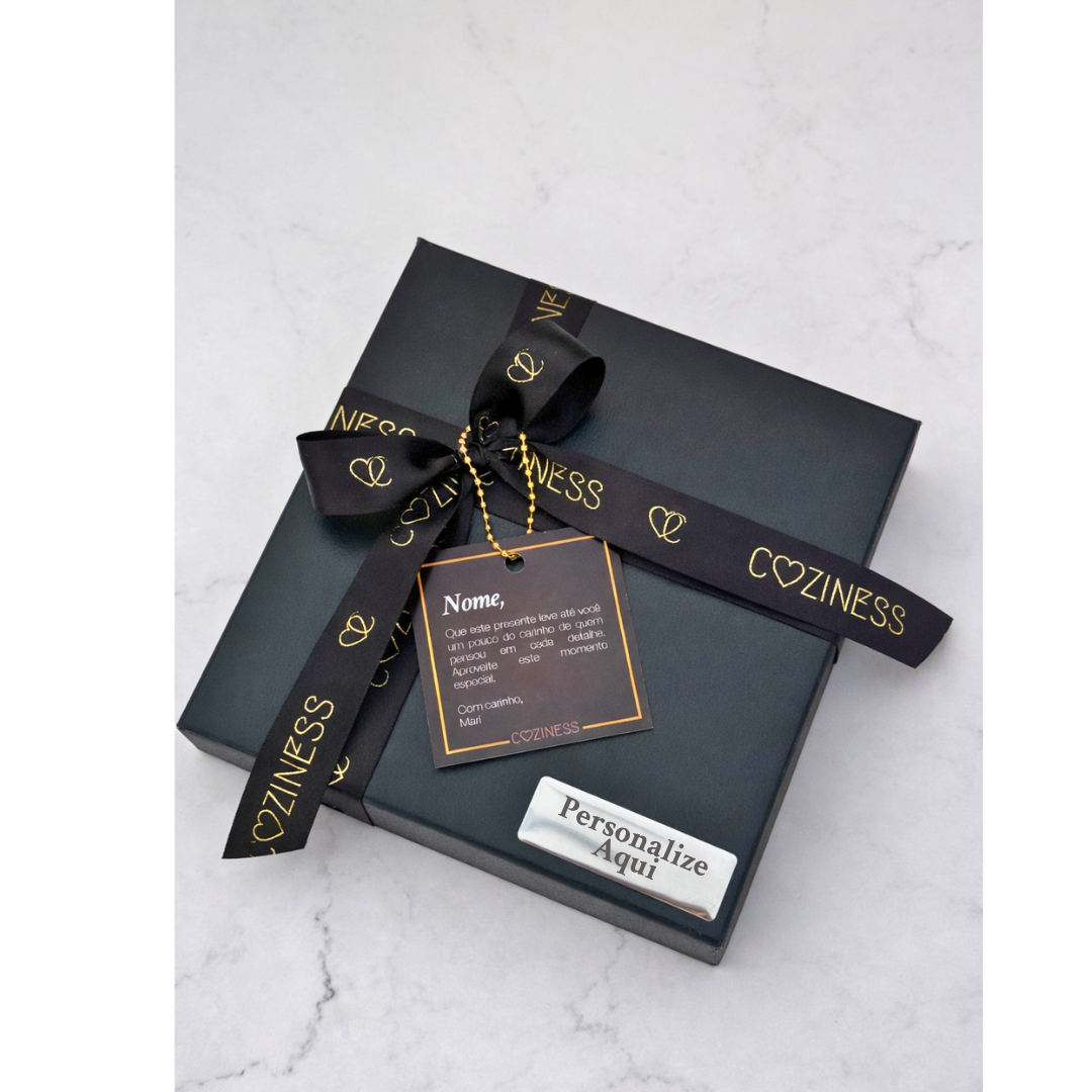O grande diferencial está na personalização completa, que pode ser aplicada na caixa, na caderneta e na caneta através de gravação a laser, reforçando a presença da marca em cada detalhe.