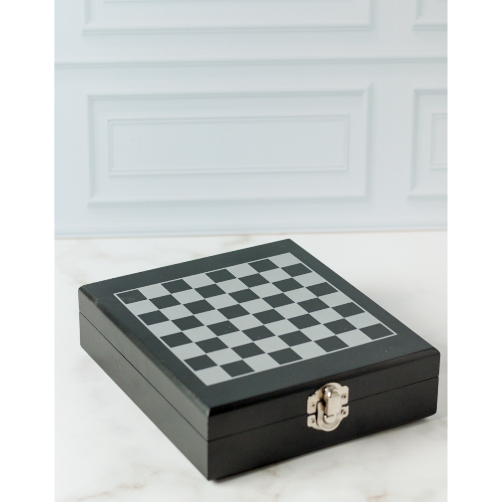 • Estojo em formato de tabuleiro de xadrez com trava de segurança